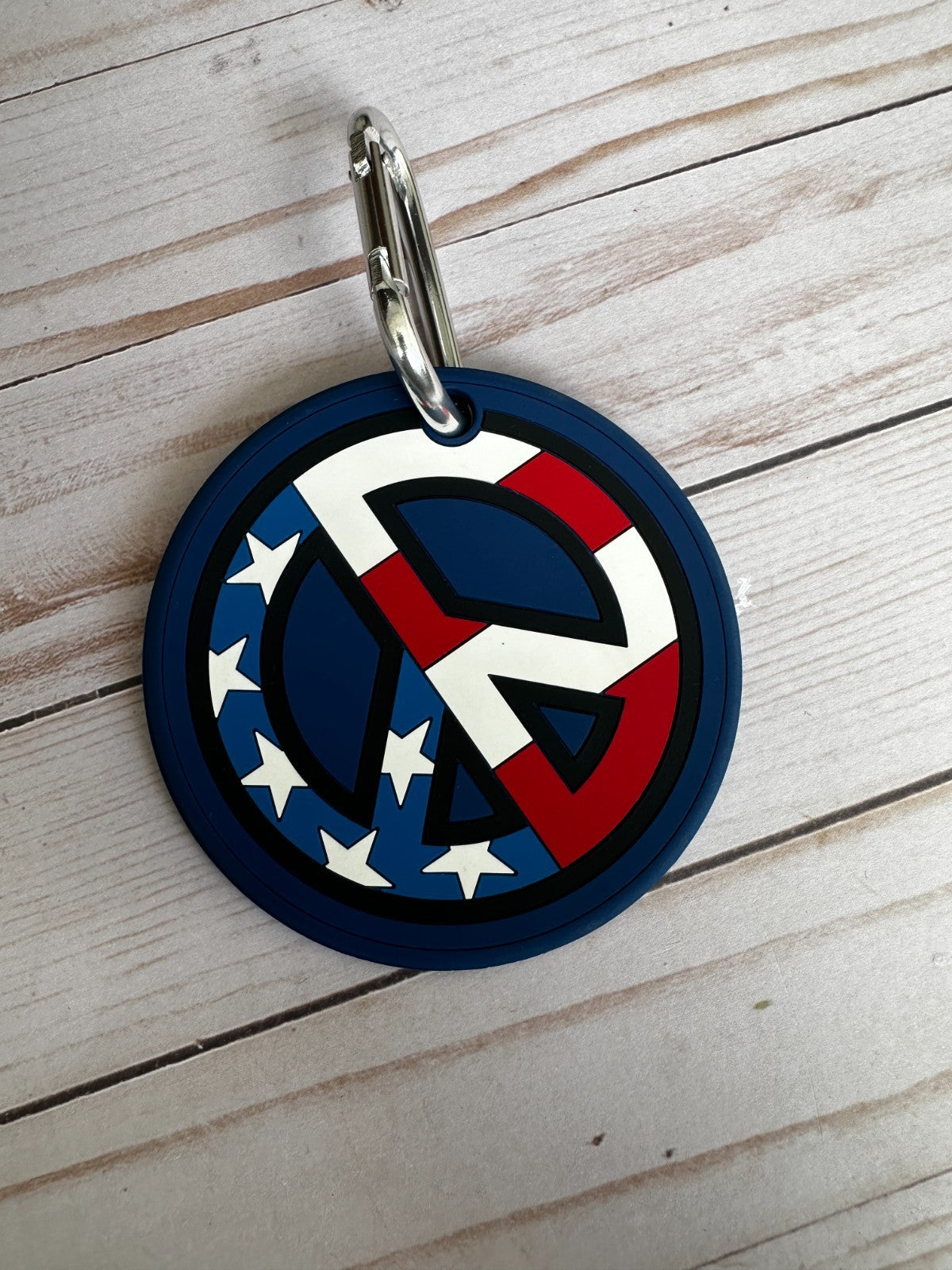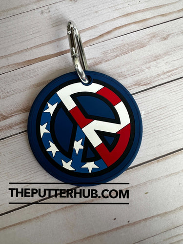 The *NEW* Scotty Cameron USA Peace 7 Point Crown Titleist Putting Disc is a blue golf accessory designed by the renowned brand Scotty Cameron. Specifically tailored for golf enthusiasts, this disc serves as a stylish and functional addition to one's golfing gear. Perfect for adding a touch of patriotism to your game while also providing a useful tool for improving your putting skills.