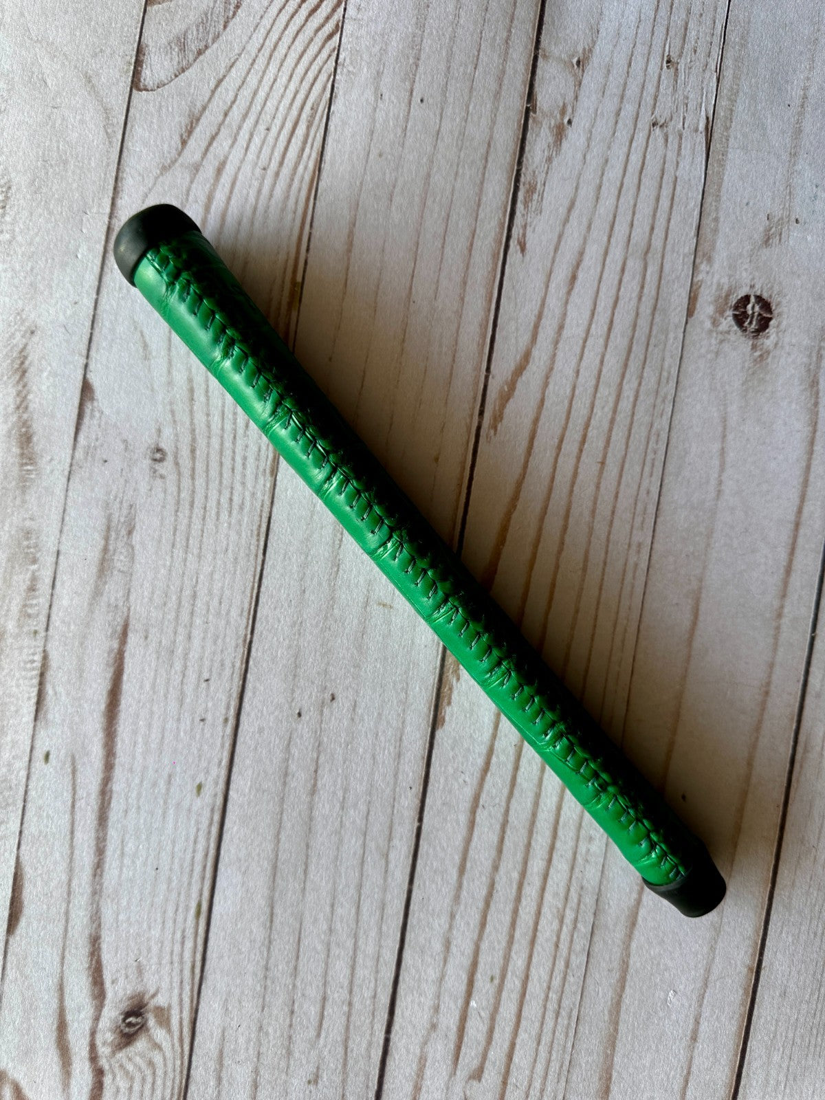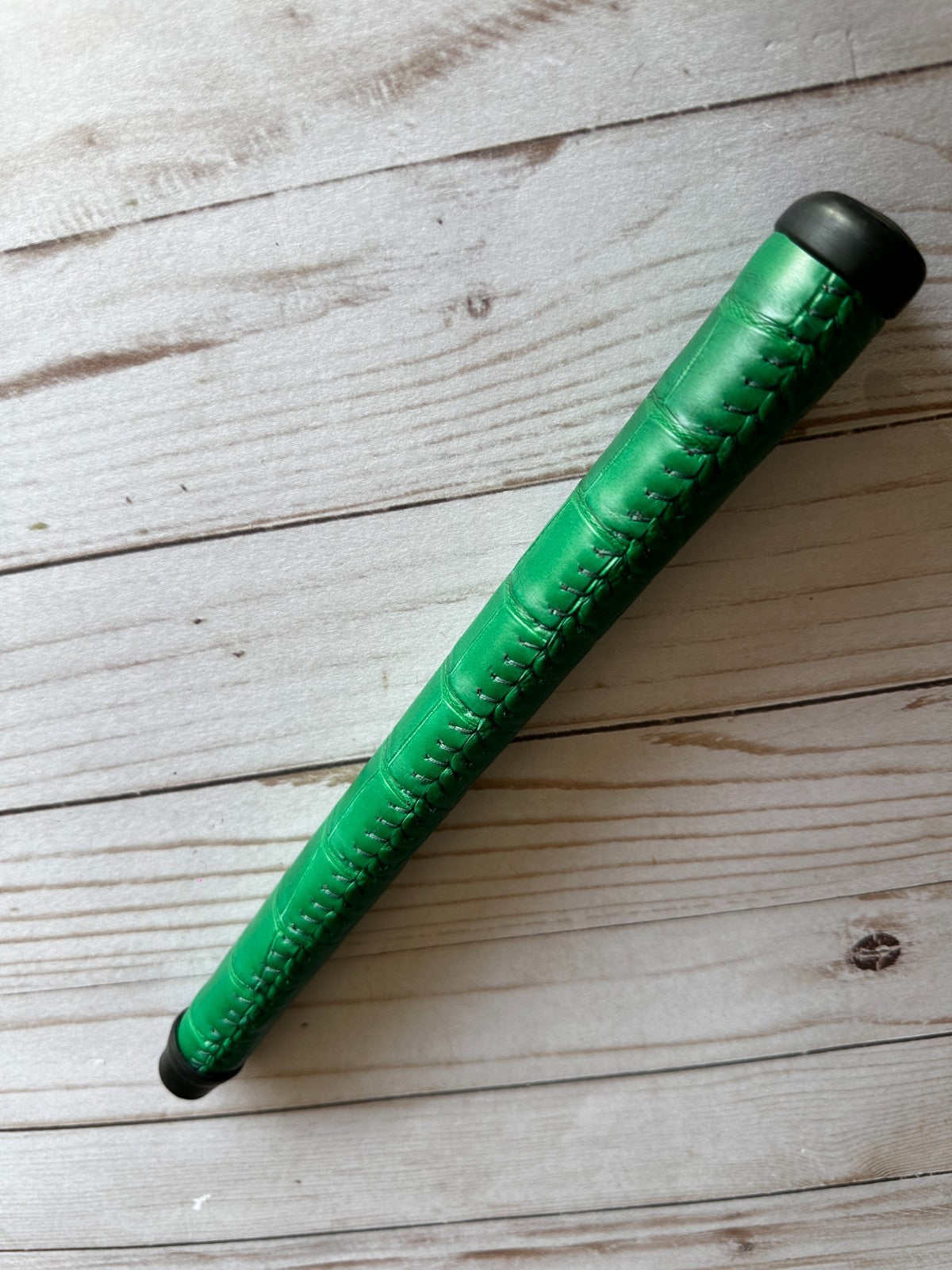The Grip Master Xotics Ostrich Handmade Genuine Leather Green Grip is a high-quality golf club grip made by the reputable brand Grip Master. Crafted from genuine leather with a unique green color, this grip adds both style and functionality to your golf clubs. Designed for a comfortable and secure feel, this grip is perfect for any golfer looking to enhance their game with a stylish and durable component.