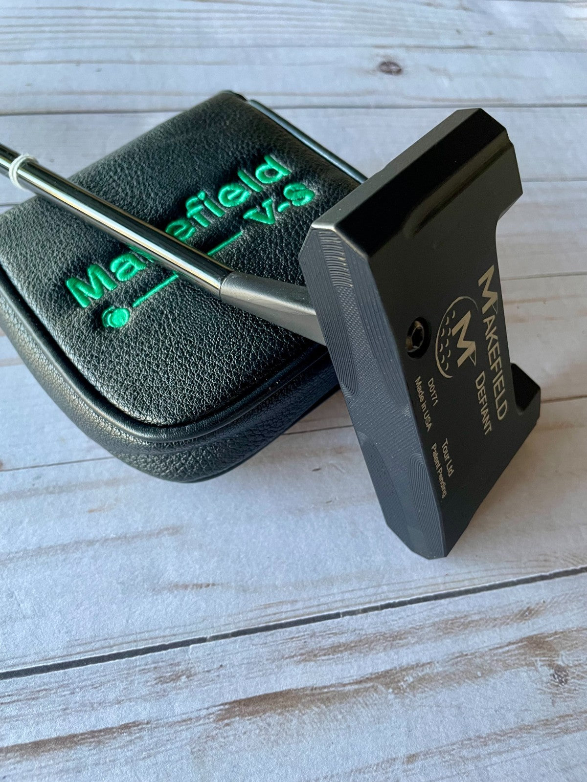 The *NEW* Defiant Tour Ltd 34in Putter is a high-quality golf club designed for right-handed players. It features a sleek black color and a mallet head shape made of stainless steel, with a 34-inch KBS CT Tour 120 black putter shaft for added precision and control. The Defiant Tour Ltd Putter by Makefield is a top choice for golfers looking to improve their putting game with a reliable and stylish club.